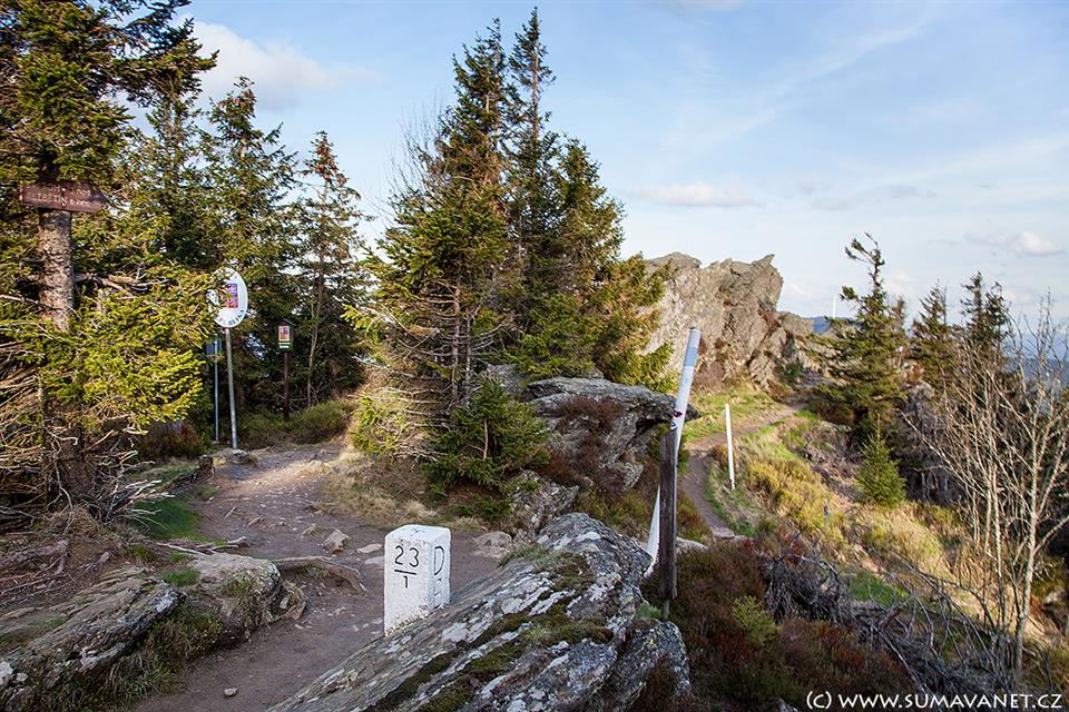 Vyšším vrcholem Velký Ostrý prochází státní hranice. Stojí zde kříž a na bavorské straně turistická chata z roku 1897. Nižší vrchol Malý Ostrý 1266 m n.m. leží na bavorské straně.