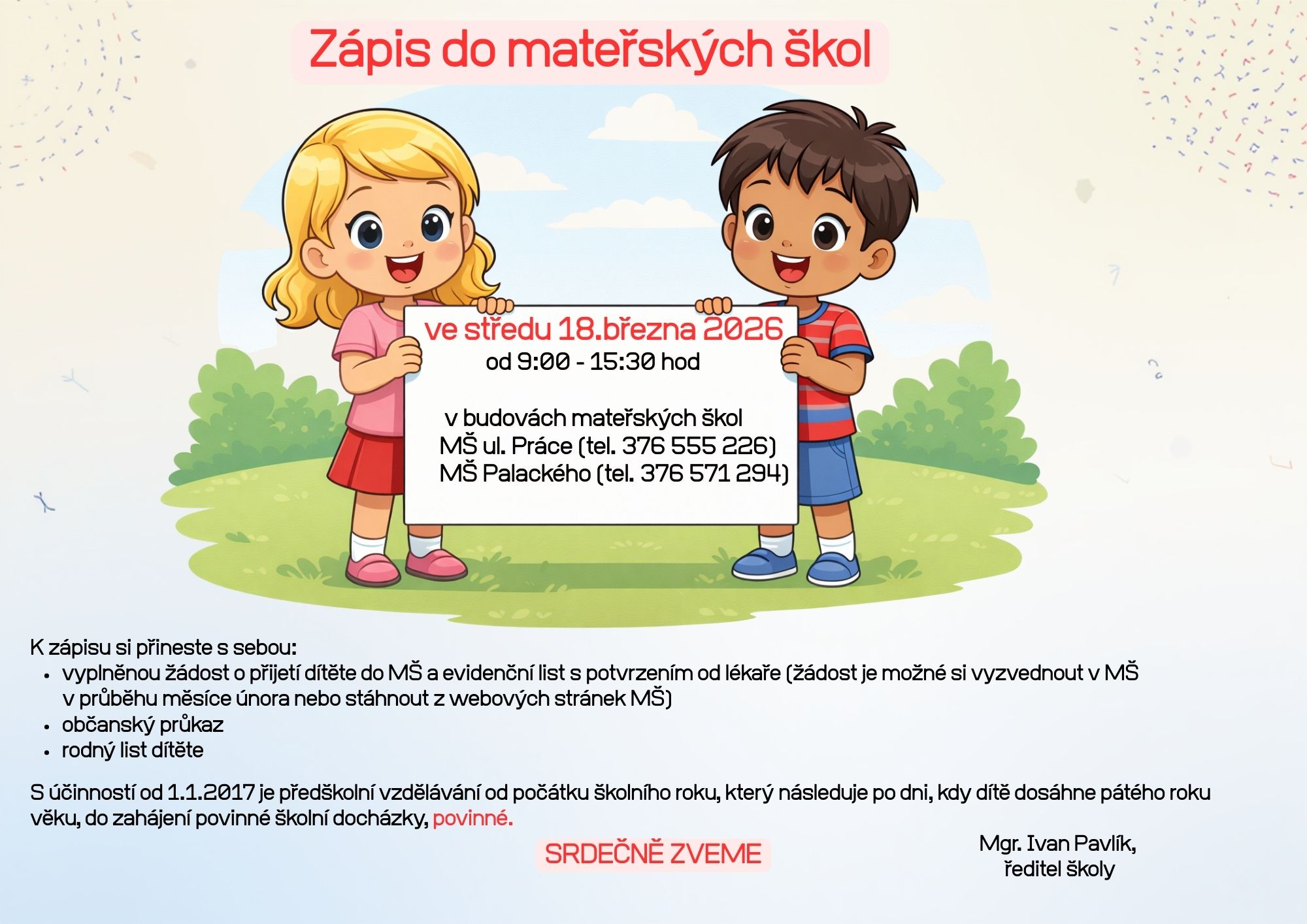 ZÁPIS DĚTÍ DO MŠ NA ŠKOLNÍ ROK 2026/2027 | Základní škola Nýrsko, Komenského ulice